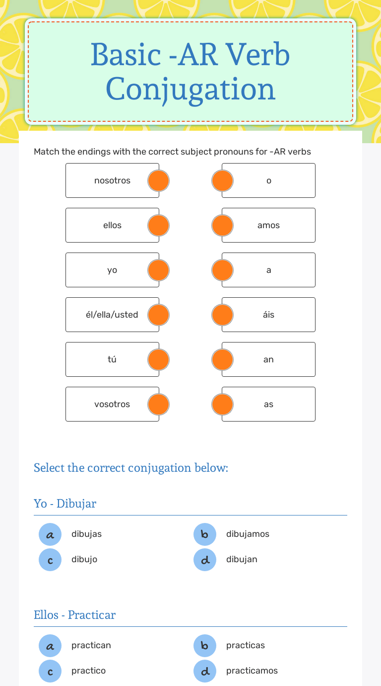 Students will practice conjugating these ar verbs and translating .